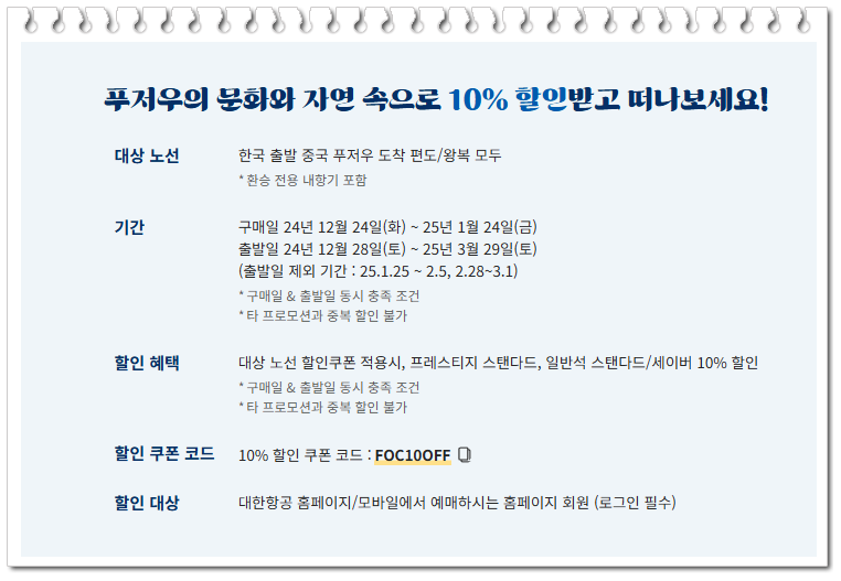 대한항공 공식 홈페이지나 모바일 앱에서는 프로모션 정보를 가장 빠르게 확인할 수 있습니다.